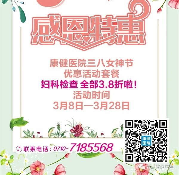魅力女性,健康同行|康健妇科三月3.8折活动火热进行中!♥ 你有多久没有审视过自己的身体了? 咳嗽漏尿、子宫脱垂、腰背疼痛、性生活障碍、肥胖等 这些难以启齿的身体问题, 严重影响到你的生活、家庭和工作, 你是否还在选择默默忍受? ······
